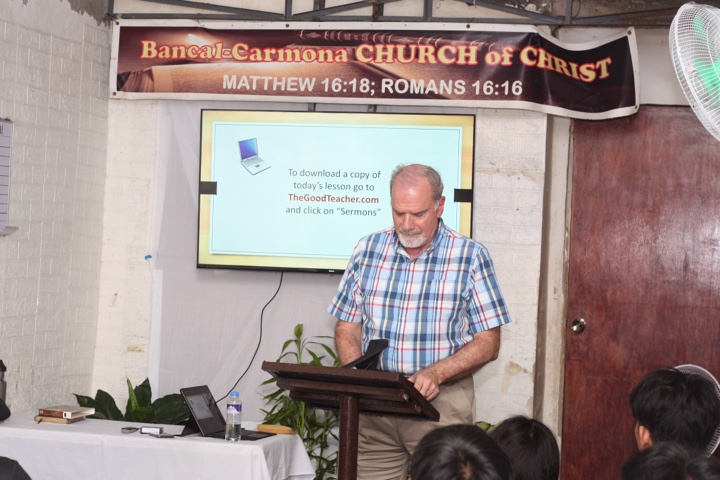 On Friday, Chris Reeves and I traveled south of Manila to the Bancal-Carmona Church of Christ and worked with Brother Junie Samontina. It was a gathering primarily of young people, so our topics addressed their needs. I talked about passages in the New Testament that deal with the relationship between husbands and wives and also considered the text in Proverbs 31 about the worthy woman. In his first lesson, Chris discussed examples in the Bible of young men and women who put God first. In his second lesson, Chris talked about youth under pressure and the need to resist peer pressure and societal pressures to be sexually promiscuous, dishonest, lazy, and so on.